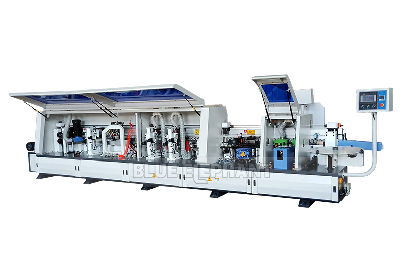 2、全自動(dòng)封邊機(jī)具有:拋光2—拋光1—開槽—平刮—刮邊—跟蹤修邊—精修—粗修—齊頭齊尾—涂膠封邊—預(yù)銑。
