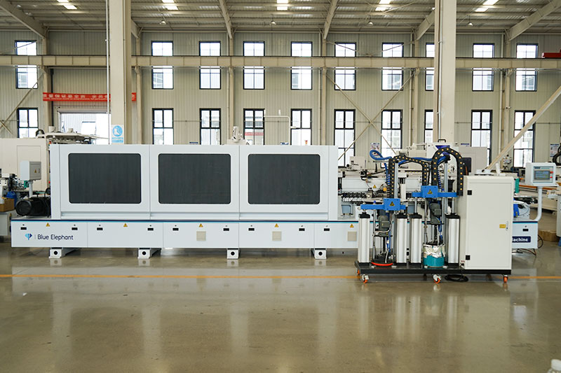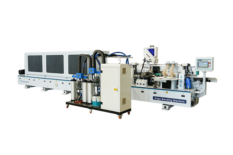 E-70JDSR全自動封邊機功能:前分離-預(yù)銑-涂膠貼邊1-涂膠貼邊2-齊頭-手動粗修-手動精修-跟蹤倒角-刮邊-平刮-后清洗-拋光1-拋光2
