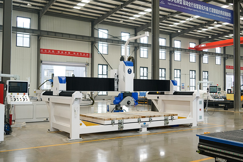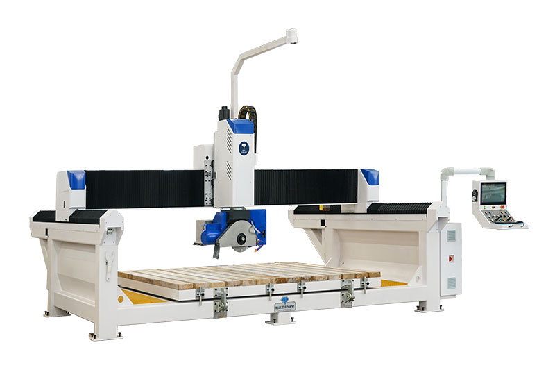 5+1 數(shù)控橋切鋸能夠以任何所需的角度和形狀對花崗巖、大理石、人造石、板巖和各種其他石材進行切割和雕刻。本機采用的藍象數(shù)控系統(tǒng)。