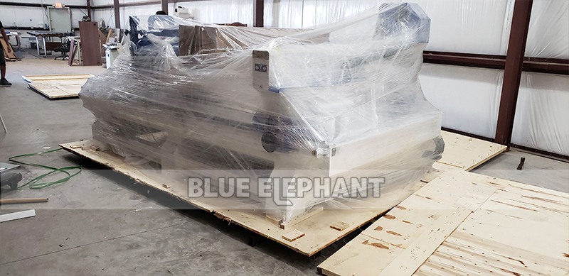 數(shù)控開料機(jī)在美國(guó)客戶廠區(qū)實(shí)拍,以下圖片由藍(lán)象客戶提供,展示了機(jī)器到廠后的卸貨及安裝調(diào)試,本文結(jié)尾展示的是調(diào)試好的設(shè)備;