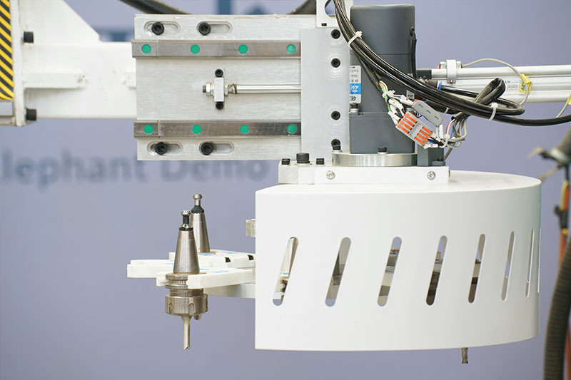 3、ATC風(fēng)冷主軸搭配8刀轉(zhuǎn)盤式換刀庫,可實(shí)現(xiàn)門鎖孔鉆孔、雕刻、切割等加工;